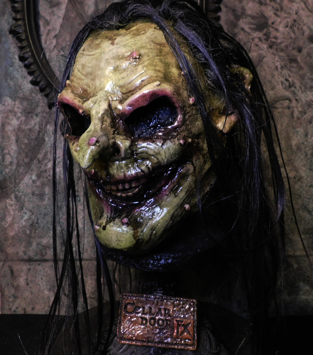 Our Half Masks come either as a “Sock Mask” which is Attached to a spandex hood, Perfect for haunters and scare actors with an easy on easy off ability, and can also make awkward fitting masks more comfortable