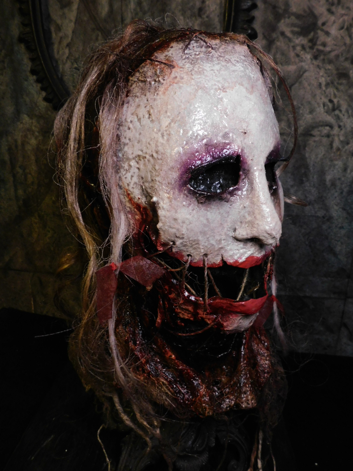 Our Half Masks come either as a “Sock Mask” which is Attached to a spandex hood, Perfect for haunters and scare actors with an easy on easy off ability, and can also make awkward fitting masks more comfortable