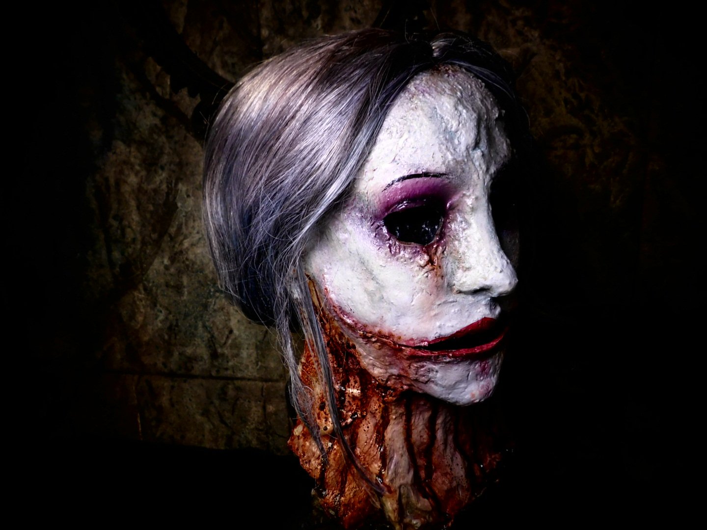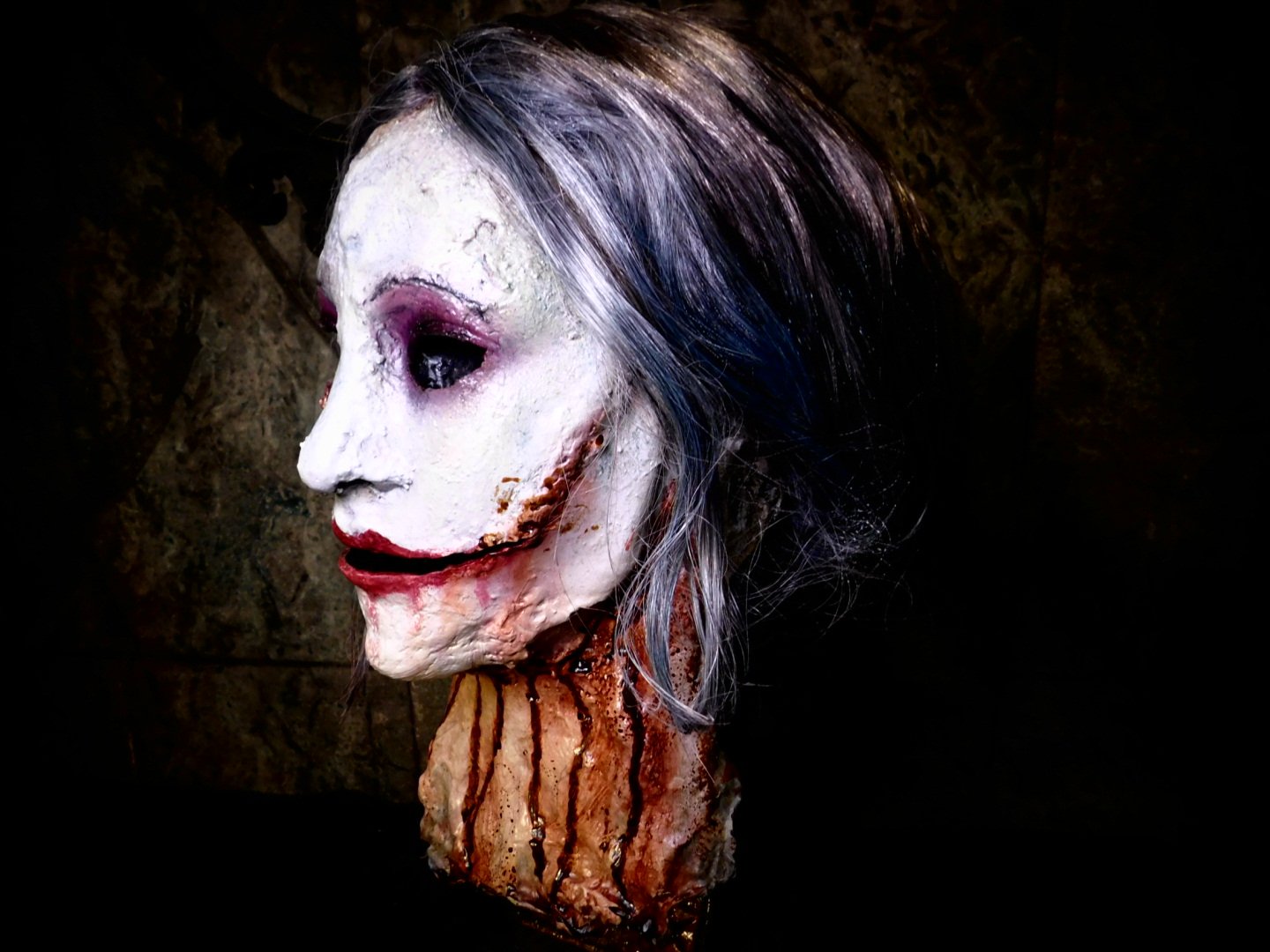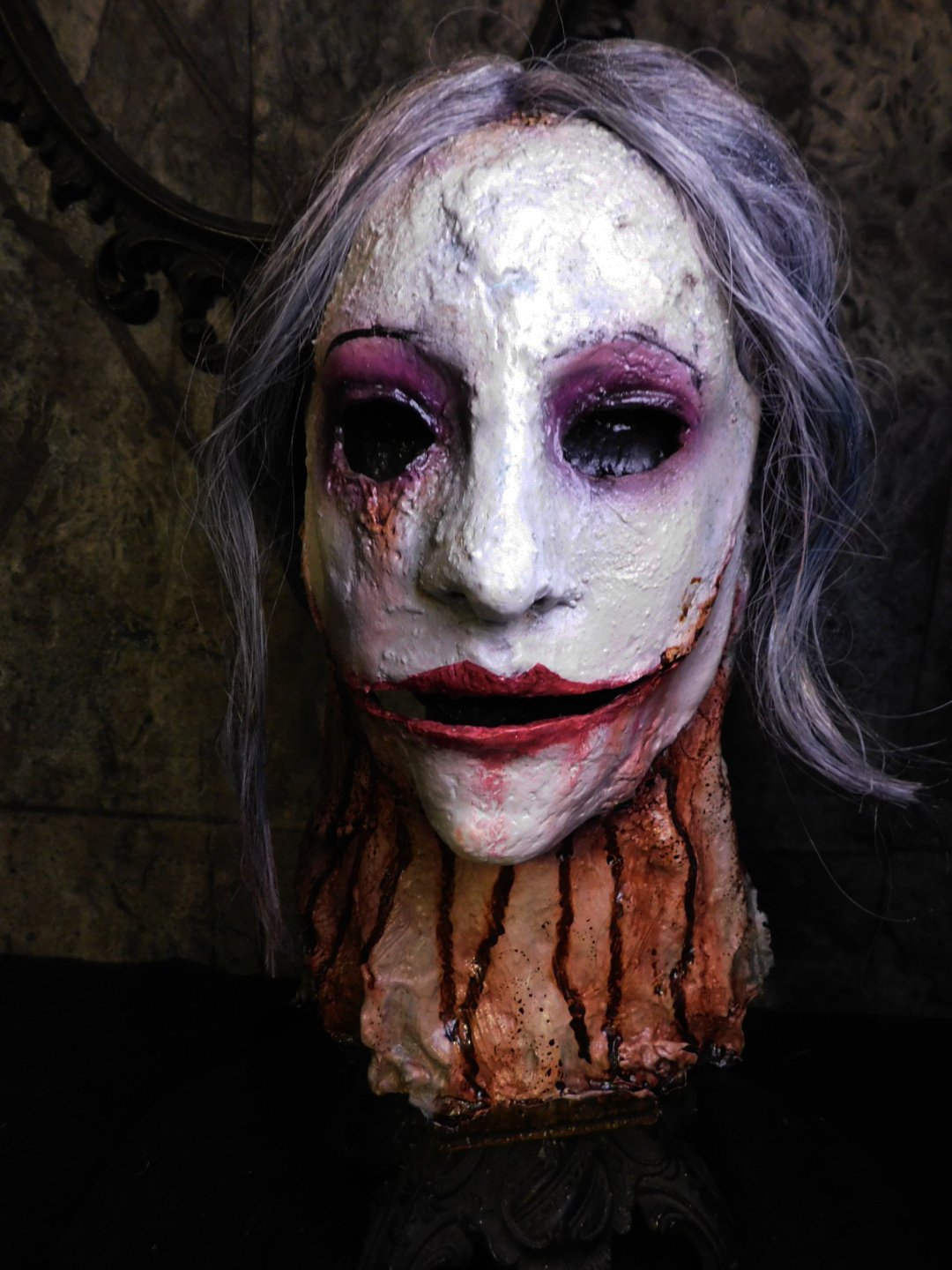 Our Half Masks come either as a “Sock Mask” which is Attached to a spandex hood, Perfect for haunters and scare actors with an easy on easy off ability, and can also make awkward fitting masks more comfortable