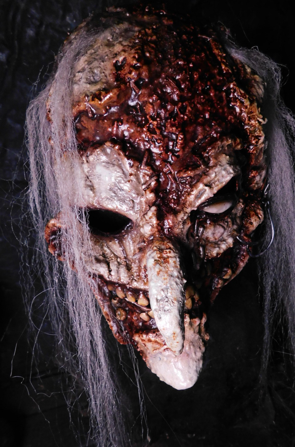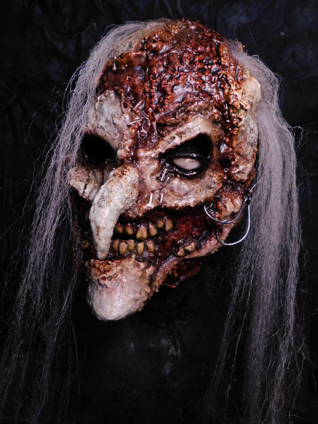 Our Half Masks come either as a “Sock Mask” which is Attached to a spandex hood, Perfect for haunters and scare actors with an easy on easy off ability, and can also make awkward fitting masks more comfortable