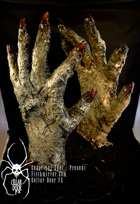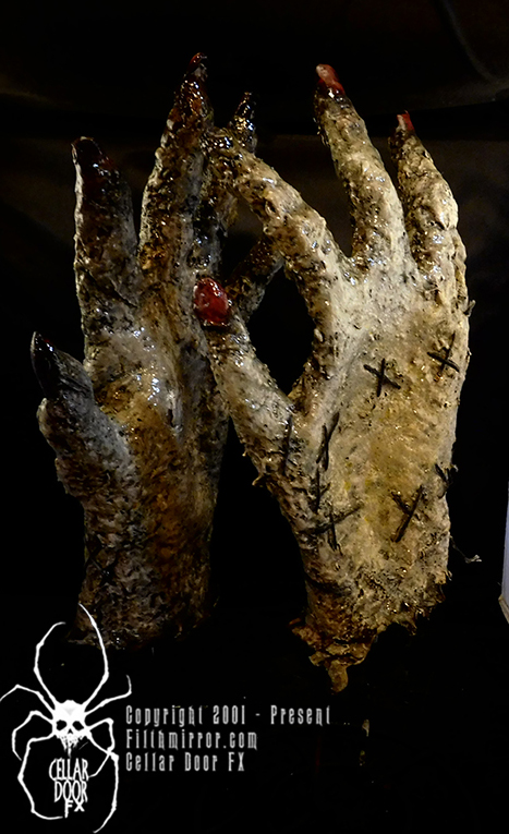 Latex Gloves, with stitching and broken fingernails custom paint available slim fitting gloves, made for average sized hands