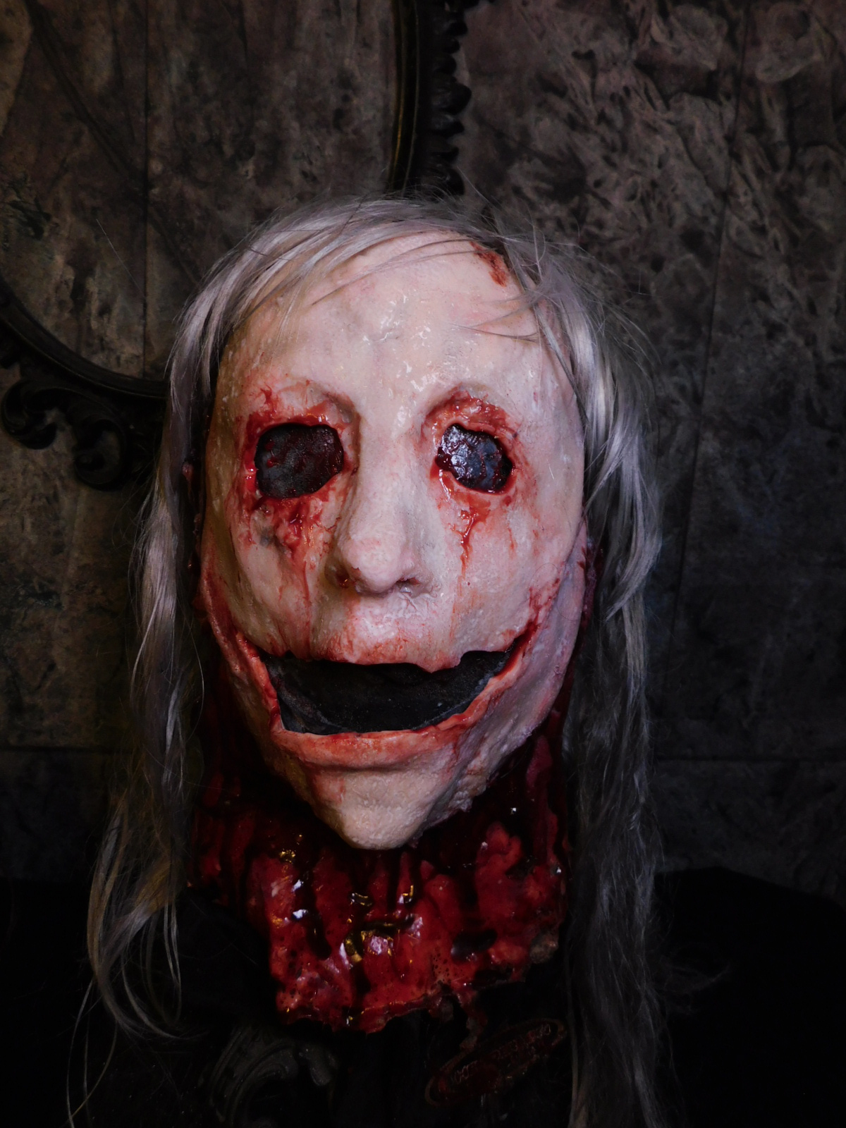 This Half Mask is attached to a snug spandex hood which minimizes the claustrophobic feeling associated with silicone masks, as well as eliminating the tearing that can also occur.