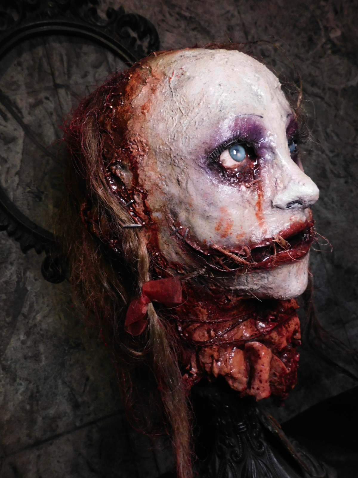 These are highly detailed, and not pre-fab factory heads. All of our props are made this way and each creation is unique. these are more or less just examples of what we can do, most all of our masks can be turned into these! contact us if you would like to order one not pictured! (prices may vary)